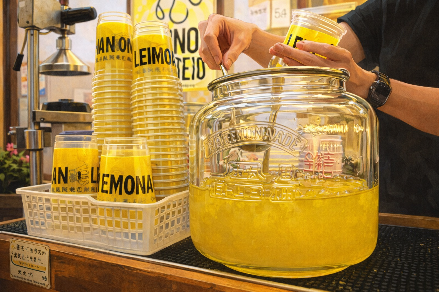 金沢発の人気レモネード専門店で、関東では川越店が有名です。菓子屋横丁の一角に位置し、レトロな街並みに映える黄色い暖簾が目印。無農薬レモンを使用し、注文を受けてから一杯ずつ丁寧に作るこだわりが人気の秘密です。